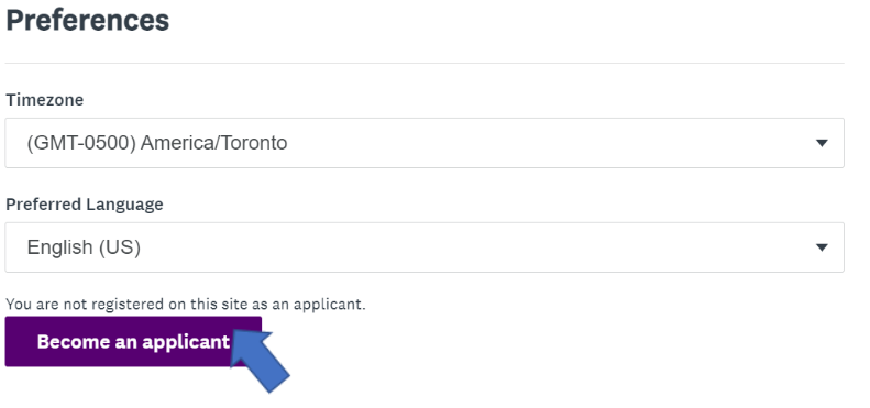 If you can't see your application/apply button, please login here. Then, click on your username then “My account”. Scroll down and you should see “Become an applicant” click on it and "Save".
